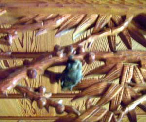 今朝は座敷の欄間で眠るコウモリを発見しました。