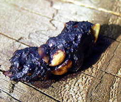 チューリップのまわりにポツン・ポツン・・・いったい誰のフン? ↑ 手すりの上(長さ2cm 直径5mm くらい) 中には木の実の種のようなものがそのまま残っています。 屋根の上に干からびた糞↑をたくさん見つけました。 ↑ 翌朝 チューリップの横に落ちていた糞 おなかをこわしていたようです。 糞図鑑があれば良いのになぁ・・・(-___-;; もし小動物の糞にお詳しい方がみえましたら是非ご連絡下さい。