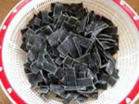| 昆布は乾燥したまま短冊切り、干し椎茸は戻して適当な大きさに切ります。 |