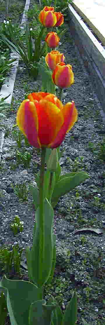皆と一緒にお行儀よく咲ききった球根は 翌年は小さな花が咲くか咲かないかになってしまいます。