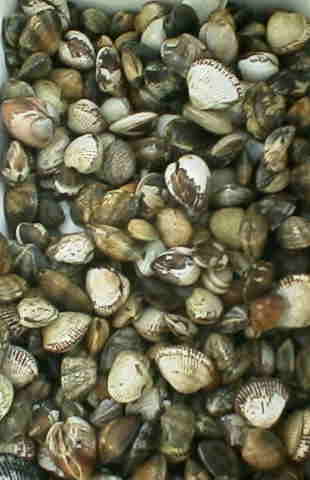 どうにかこうにか一人に赤だし一杯分のアサリと赤貝が採れました。