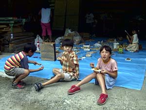「このたこ焼きフワフワでめちゃおいしい。 なぁ もっとないの?」 親方(社長)はせっせとたこ焼きを焼いて、みんなはせっせと食べました。 工作はそっちのけ、みんなたこ焼きでおなかがいっぱいになったみたい。