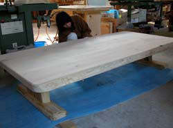 | ↑ 桧材の座卓(塗装をしているところです。) 2002.12.11 |