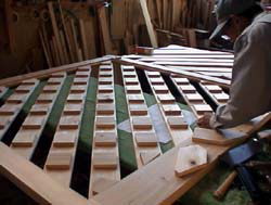 | ← 新年初めての作業風景 8日の仕事始め(道具直し)は名ばかりで 実質、9日が道具直し&機械の調整になってしまいました。(^_^;; 画像は鉋の刃を研いでいるところですが、 ほとんどの職人さんは皆、お正月休み中に 自分専用の道具類を調整し研いできます。 2003. 1. 9 |