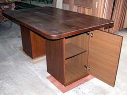 | 上野市の伊賀菓庵山本さま(親戚)からの 注文、店舗用オリジナルオーダー家具です。 材質は地元産杉材(天板は3枚接ぎ) 足になる部分は合板使用、両サイドより物入れ(商品の収納用)になっています。 2003. 5.10 |