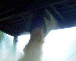 | 集塵設備から大鋸屑を落としている所 → すみれの大鋸屑(おおかた桧・杉材です。)の 行方 使い道は・・・? 今のところ、農業高校(養豚部)へ運んで頂き 豚の寝床(行く行くは豚の餌にもなります)に なっています。 最終的に豚の口に入る物なので、ベニヤや 合板等 接着剤の入ったものは絶対ダメ!! パネルソーでベニヤ等を切断した時は要注意 !!、近々パイプを別にする予定です。 2002. 9.14 |