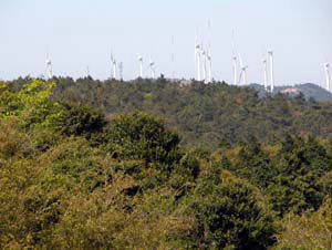 左 : 三角点(青山町)より風車(風力発電設備)(久居市)を望んだところ