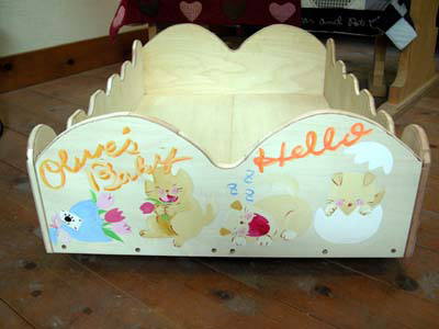 12月7日(日) オリーブ♀(7歳)の出産に向けて赤ちゃんを育てる箱(キャスター付き)を作りました。 箱の側面4面に私と子ども3人でそれぞれ1面ずつ絵を描こうということになったけど 小6の息子は鳥しか描けないからイヤだって・・・(-___-;; 結局娘たちと1面ずつ、3面だけを描いてとりあえず完成! う〜ん 気に入ってくれるかなぁ・・・??? 中にオリーブのお気に入りマット(お風呂用)を入れる予定です。