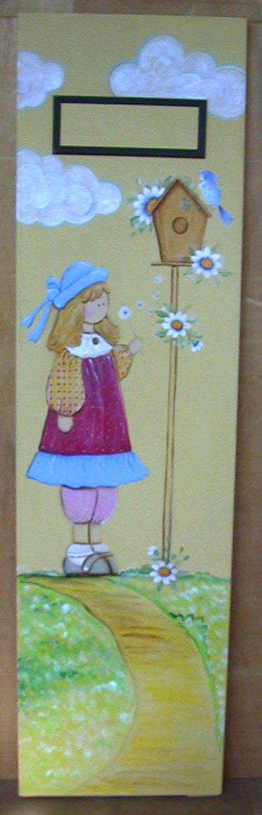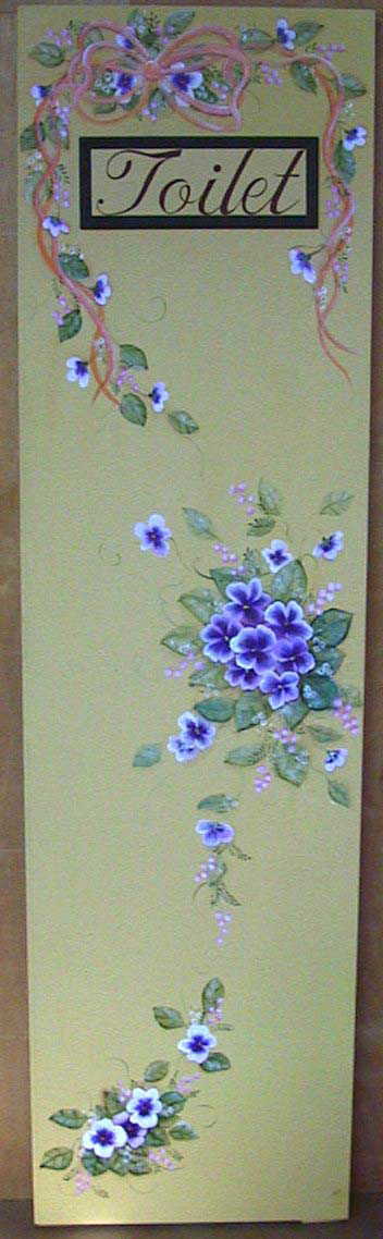 シナベニヤの端材をつなぎ合わせて作ったフラッシュドアにすみれの花etc..をペイントをしました。