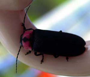赤い頭部にある黒い模様はゲンジボタルの証拠です。