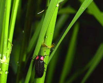 ↑これは田んぼの畦道、草を刈った上にいたホタル。
