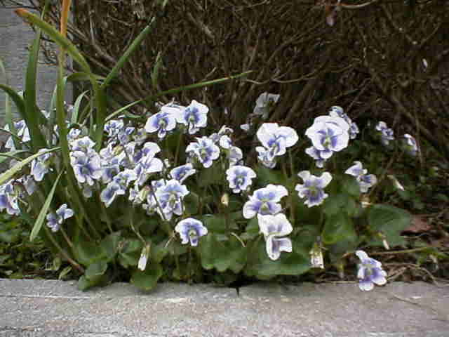 | 花弁に紫色のすじが入っています | 普通のすみれに比べてかなり小さいすみれです。 | 山野や人里、庭、どこででも見られる すみれです。花どき長い花柄が立って目立つことからの名前です。 |
