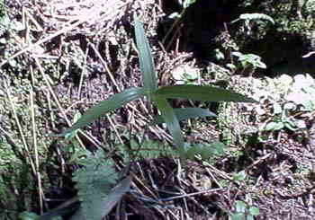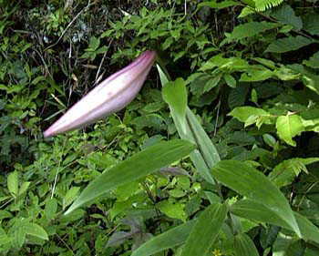 5月中旬、すみれの工場から300mほど山道を歩いていったところで、ささゆりの芽を見つけました。