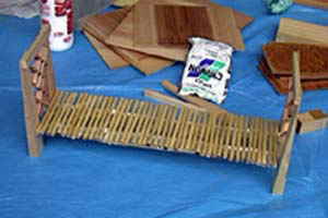 左から 吊り橋、真っ黒クロスケ(黒く塗る予定)、おうち。