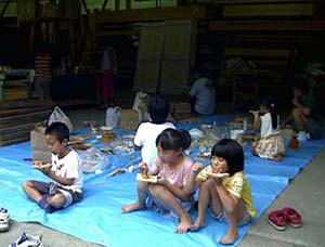 「このたこ焼きフワフワでめちゃおいしい。 なぁ もっとないの?」 親方(社長)はせっせとたこ焼きを焼いて、みんなはせっせと食べました。 工作はそっちのけ、みんなたこ焼きでおなかがいっぱいになったみたい。