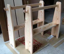 4月に開園した名張市のまきば園さまからの 注文、幼児用のオリジナル玩具?です。 材質は桧無垢材。 玩具として用いる他、大きな布を利用することで紙芝居や人形劇等々の舞台にも・・・ また、同じように布をかけて、部屋の隅に置くと、幼児用の小さなスペースを設けることも可能です。 2003. 3.15 |