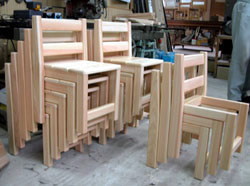 | さくら保育園さんからの、追加注文 幼児用の椅子、制作の様子です。 材質は桧無垢材。 2003. 3.23 |