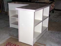 | 4月オープン美容院さんからの依頼。 店内のオリジナルカウンターが完成しました。 見積価格は \ 95,000 でしたが・・・ 納期が若干遅れたこともあって 請求金額は 税込みで \75,000円 バリバリの赤字工事となりました。 (なぜか女性には弱いすみれ工房です。) 2003. 3. 5 |