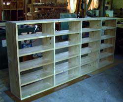 店舗(お寿司屋さん)用の棚。 → あと背板を貼ったら完成です。 桧材だったらいうことないんだけど・・・ 工務店さんとお店のご主人のご希望で (とにかく価格を安くということで) なぜか北欧パイン材での制作となりました。 とてもきれいに仕上がりましたが、う〜ん いまいち かな? (-___-;; 2002. 4. 1 |