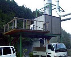 | 青山町ではまだ喧しく言われていませんが 都会では、もうすでに廃材や鉋屑、大鋸屑を 燃やすことは出来なくなっていますよね。 たとえ合板等が入っていなくても、やはり煙を 上げることは良くないのでしょう。 きっとそのうち田舎でも燃やせなくなるよね。 と悩んでいた所へ、近くの農業高校からお話 があってもらって頂くことになりました。 大鋸屑が湿っているとかなり時間がかかるし 風の日は大変ですが、これも大切な仕事の ひとつになりました。 2002. 9.14 |