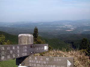 右 : 三角点より伊勢湾(お天気が良いと海が見えますが今日は残念ながら霞んでいました。)